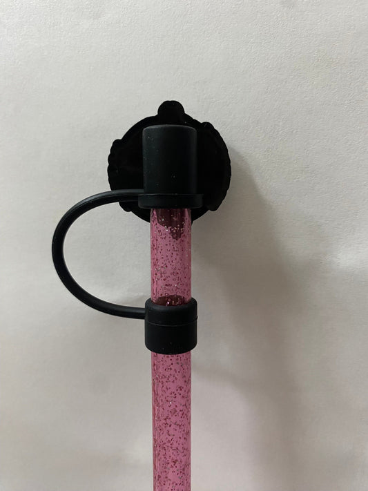 Interchangeable & Personalizable Pink Rose/Clear Diamond Straw Topper for 10 mm Straws