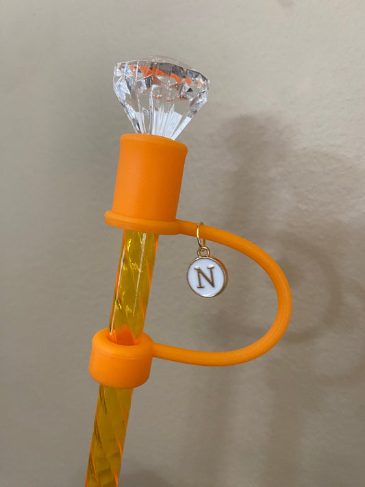 Interchangeable & Personalizable Clear/Orange Diamond Straw Topper for 10 mm Straws