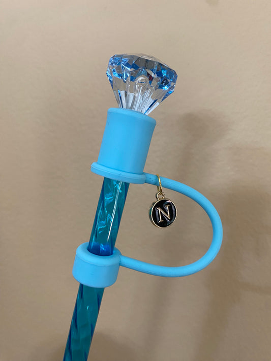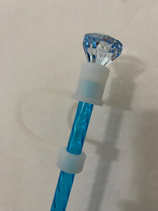 Interchangeable & Personalizable Clear/Light Blue Diamond Straw Topper for 10 mm Straws