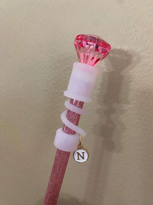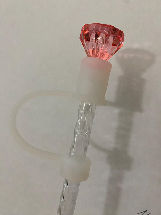 Interchangeable & Personalizable Clear/Light Pink Diamond Straw Topper for 10 mm Straws