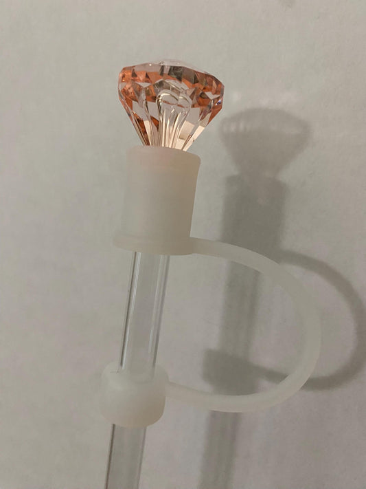 Interchangeable & Personalizable Clear/Peach Pink Diamond Straw Topper for 10 mm Straws