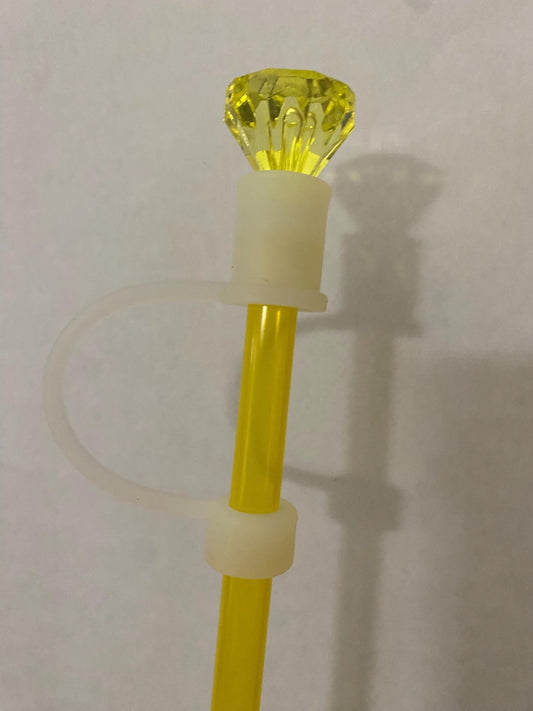 Interchangeable & Personalizable Clear/Yellow Diamond Straw Topper for 10 mm Straws