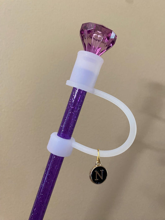 Interchangeable & Personalizable Clear/Purple Diamond Straw Topper for 10 mm Straws