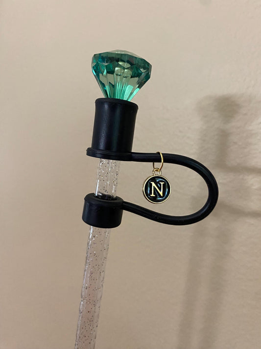 Interchangeable & Personalizable Dark Green/Black Diamond Straw Topper for 10 mm Straws