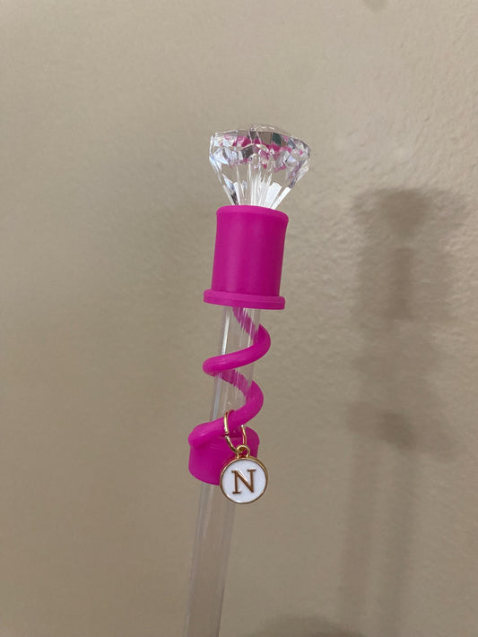 Interchangeable & Personalizable Clear/Hot Pink Diamond Straw Topper for 10 mm Straws