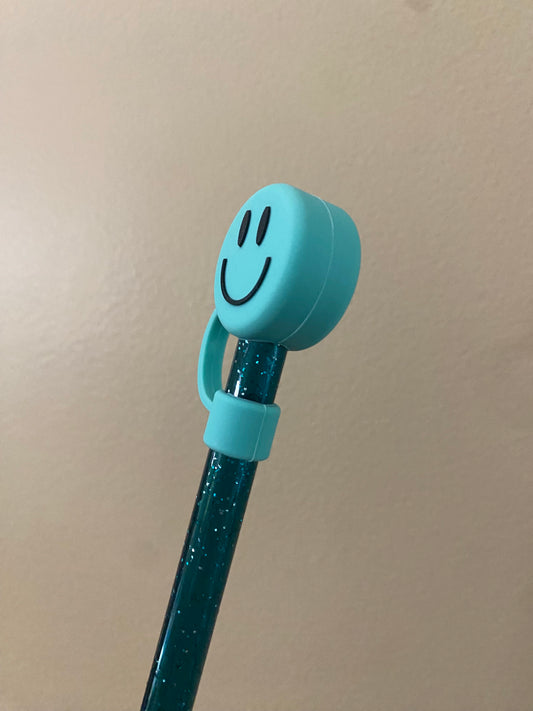 3D Bluish Green Smiley Straw Topper for 10 mm Straws