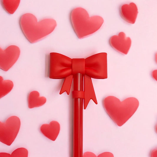 3D Red Silicone Bow Straw Topper for 10 mm Straws