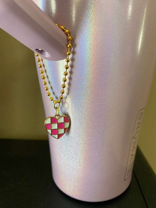 Pink Checkered Flower Straw Topper for 10 mm Straws