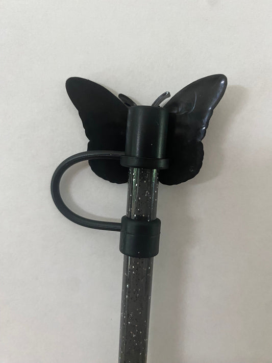 1 Deluxe Oversized Black Butterly Straw Topper for 10 mm Straws