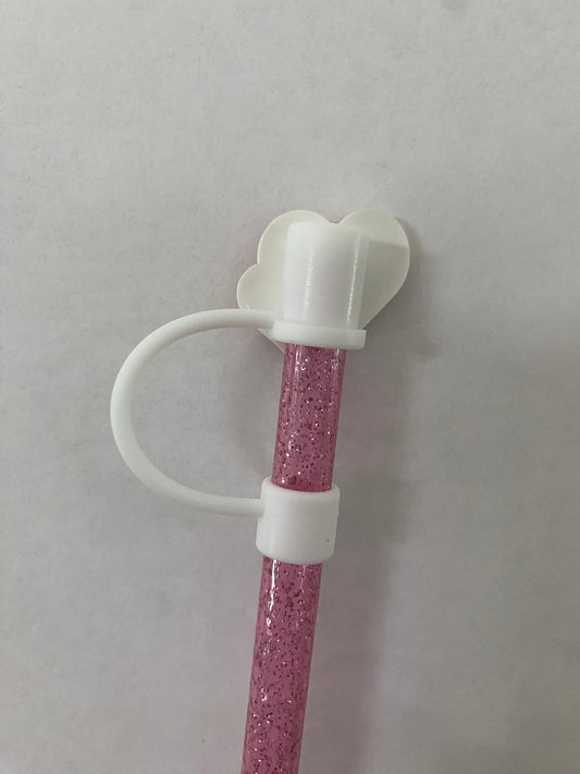 1 Deluxe Two Pink Hearts Straw Topper for 10 mm Straws