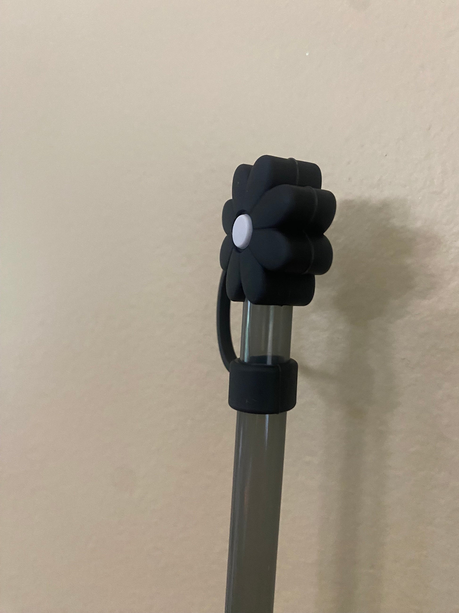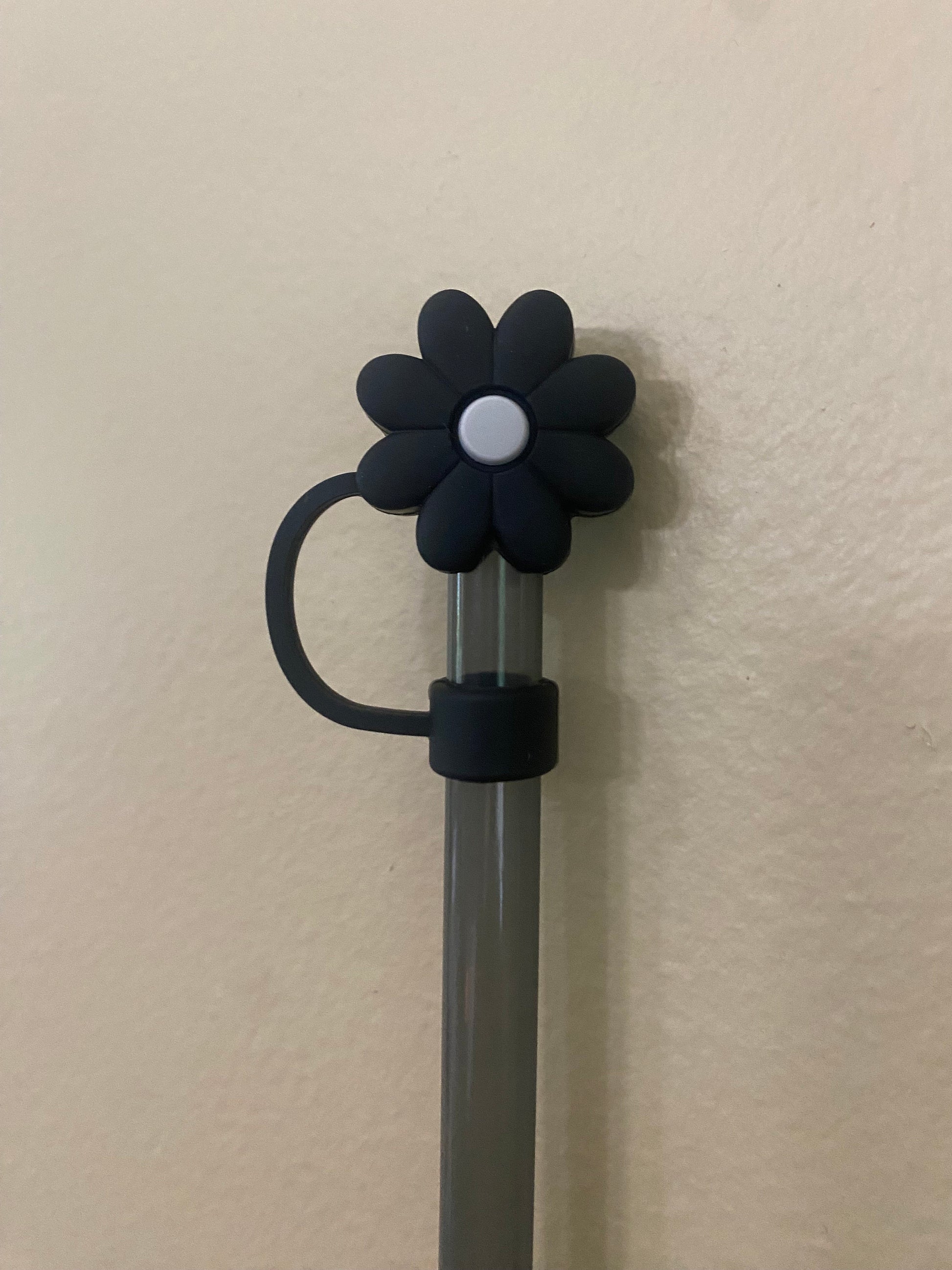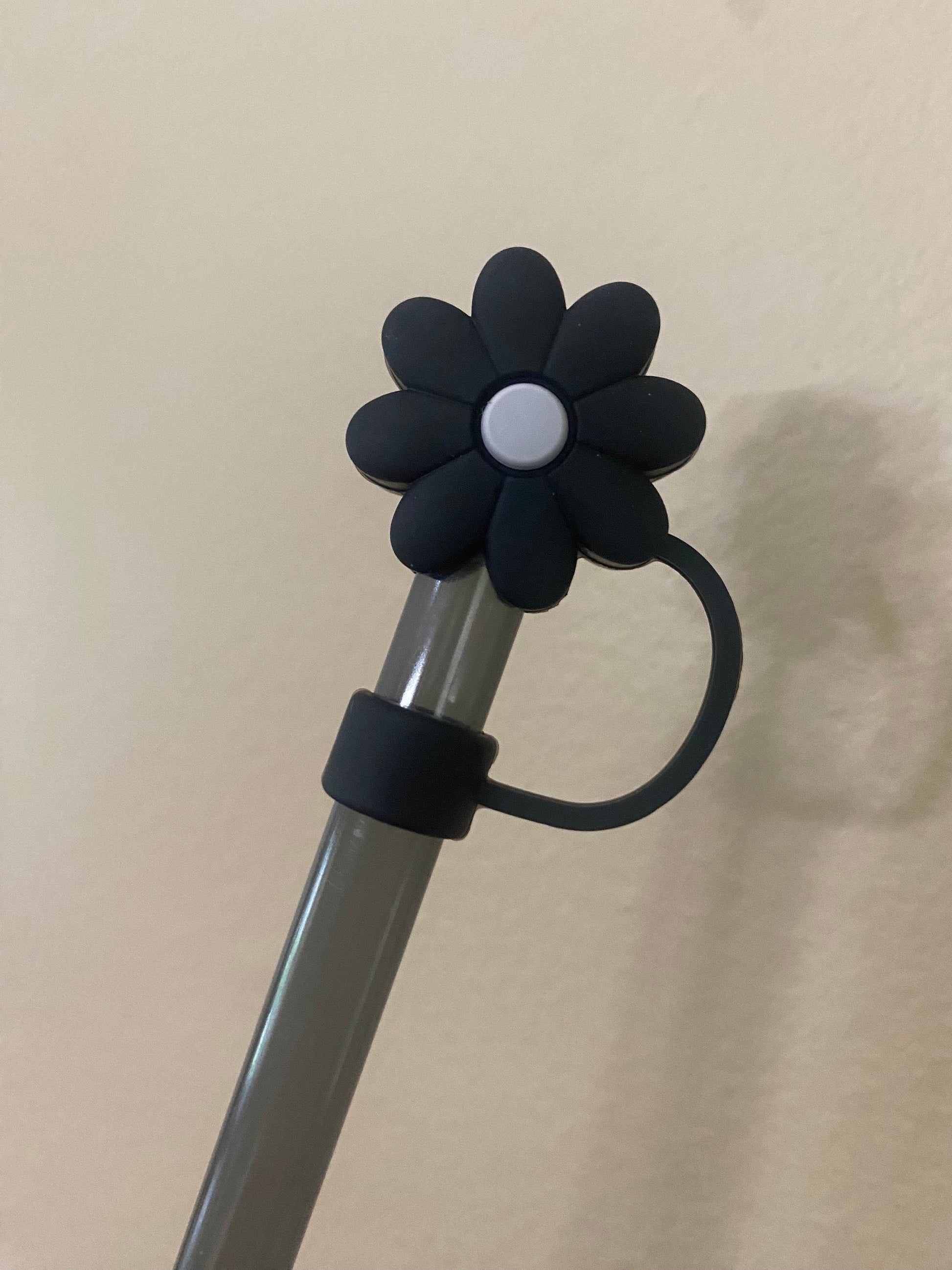 3D Black Daisy with Grey Center Straw Topper for 10 mm Straws