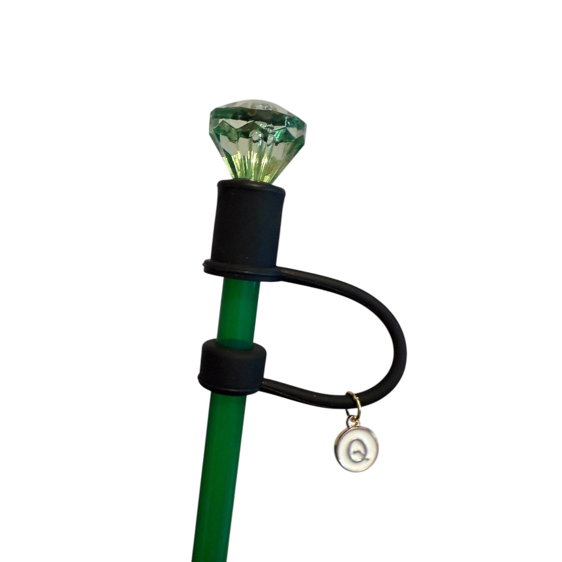 Interchangeable & Personalizable Dark Green/Black Diamond Straw Topper for 10 mm Straws