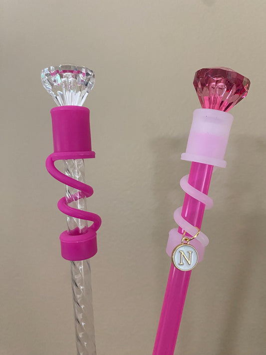 Interchangeable & Personalizable Clear/Pink AND Pink/Clear Diamond Straw Topper for 10 mm Straws