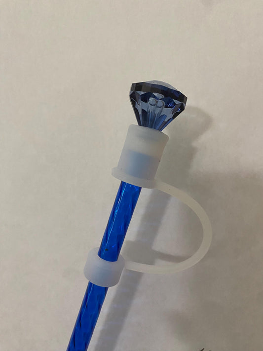 Interchangeable & Personalizable Clear/Midnight Blue Diamond Straw Topper for 10 mm Straws