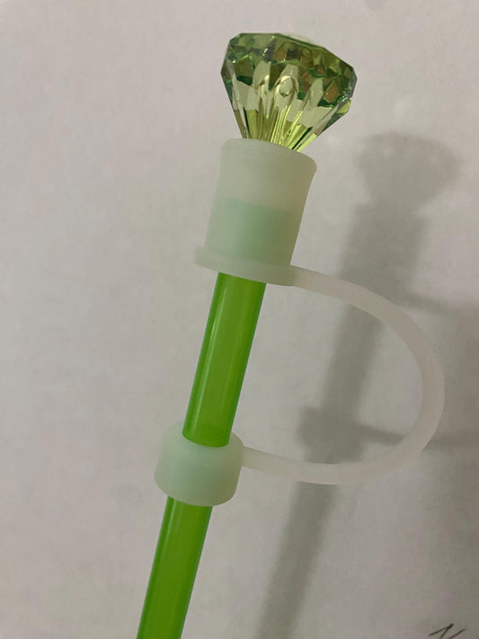 Interchangeable & Personalizable Clear/Lime Green Diamond Straw Topper for 10 mm Straws