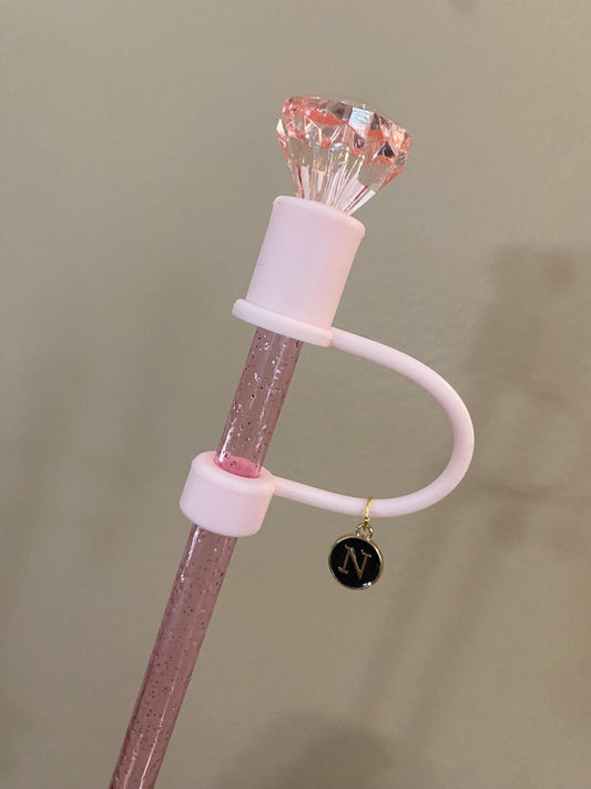 Interchangeable & Personalizable Clear/Light Pink Diamond Straw Topper for 10 mm Straws